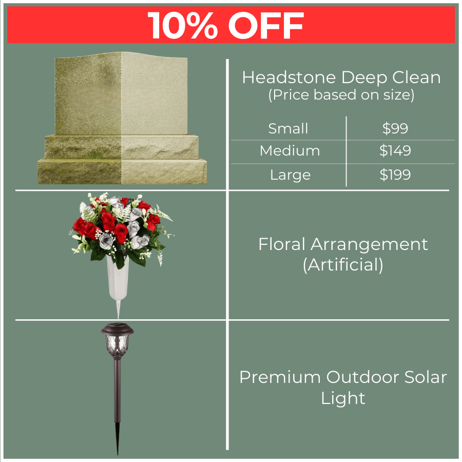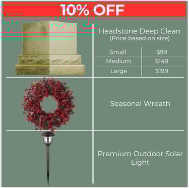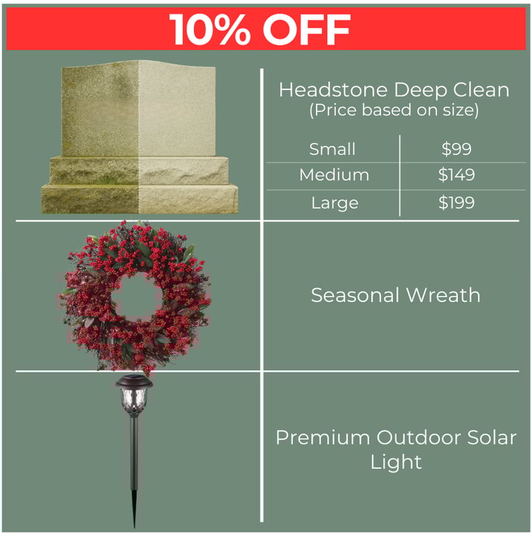 Headstone Deep Clean + Flowers + Wreath + Lighting